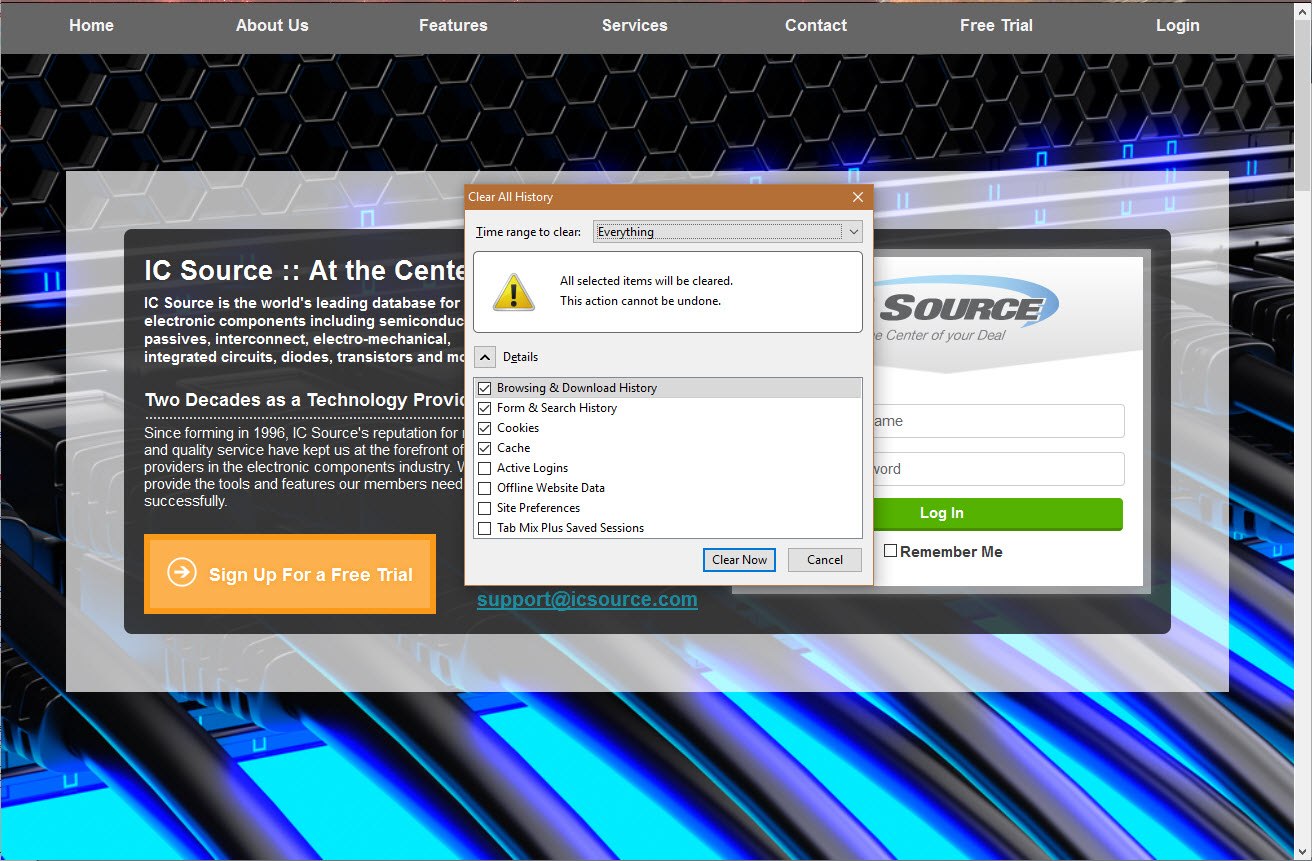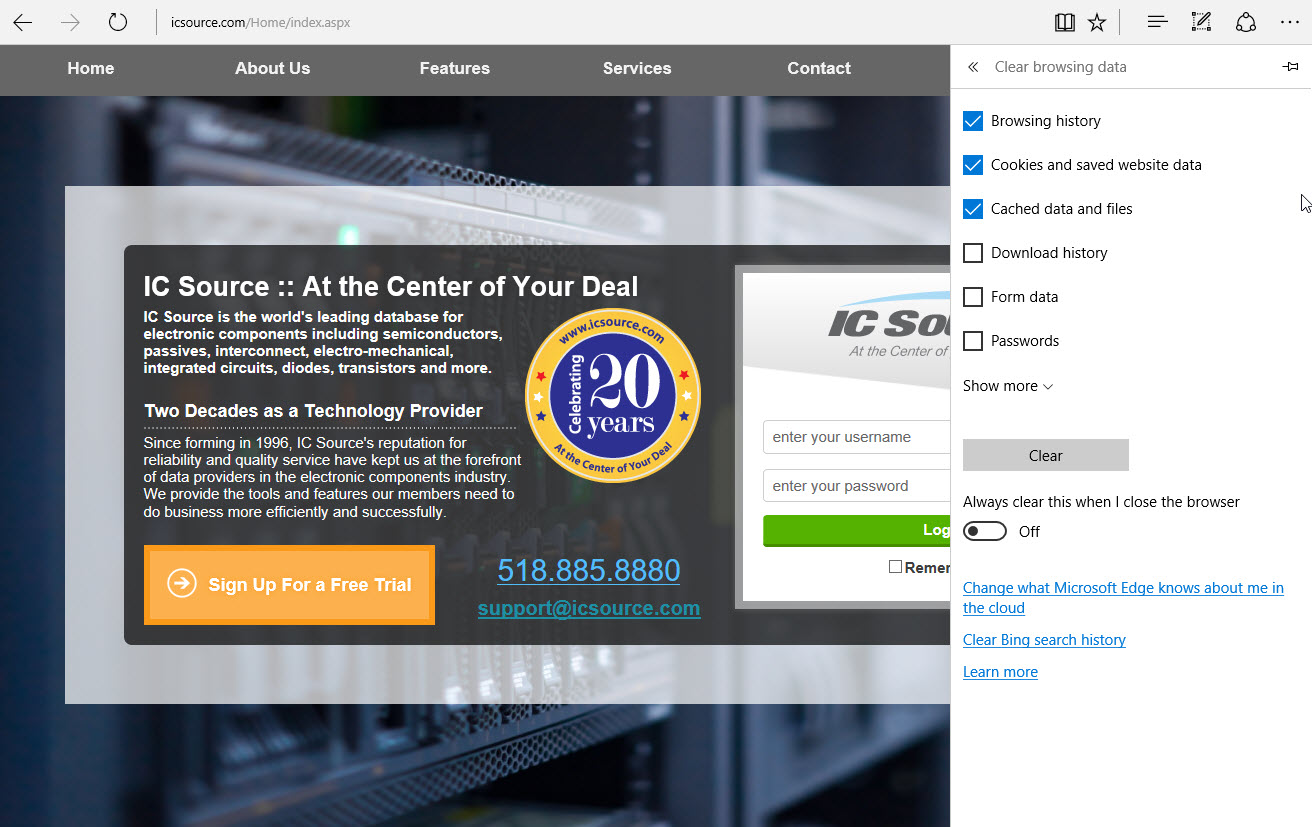 For IE 10, 11, Edge: enter "Ctrl + Shift + Del" on your keyboard to bring up the Clear Browsing History window.