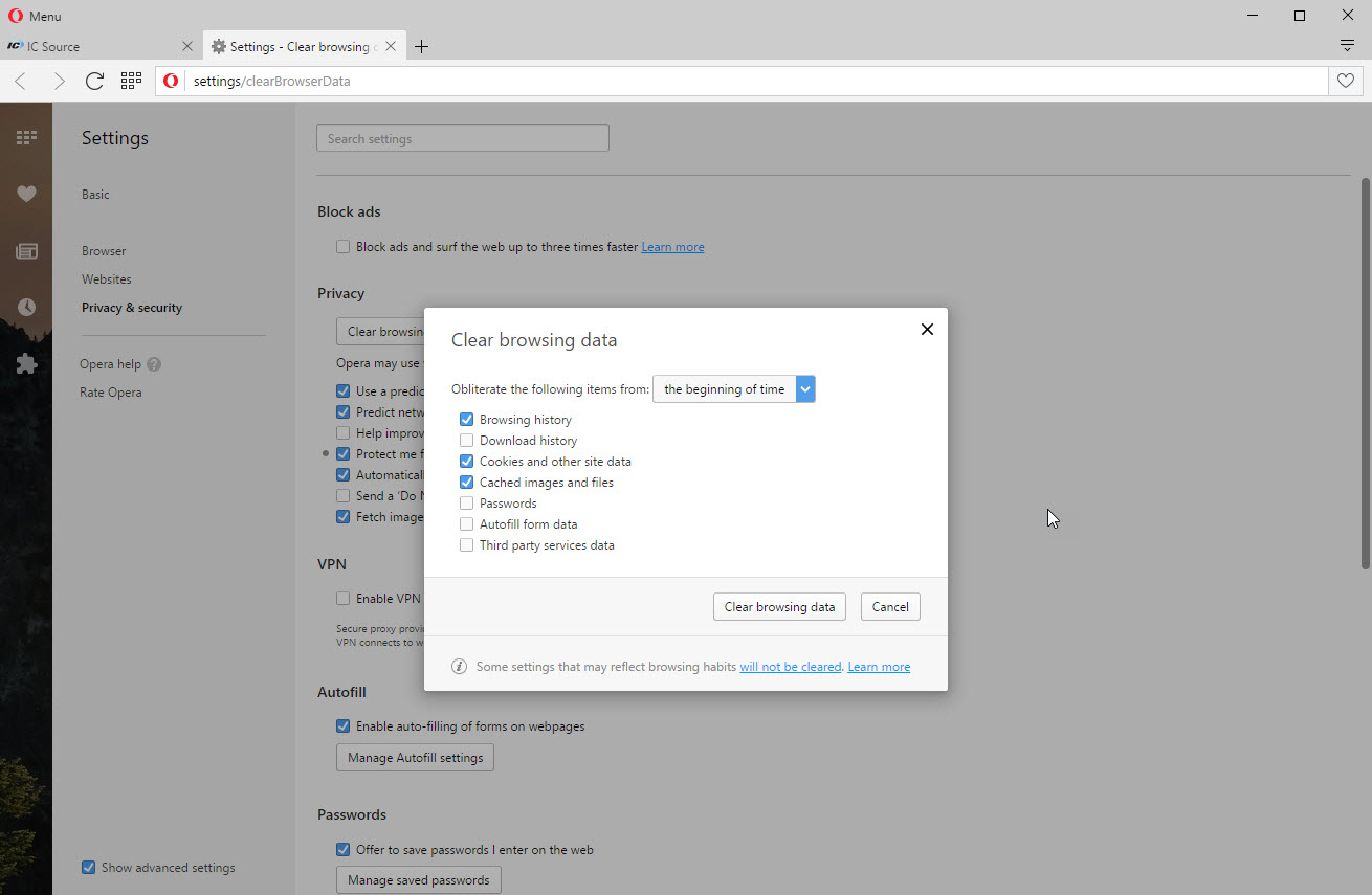 • Make sure "the beginning of time" is selected under "Obliterate the following items from".